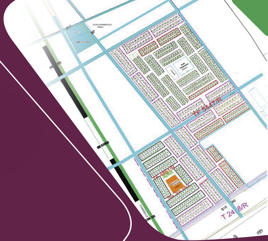La parcellisation des terrains confère des positions d’emplacement multiples. Les terrains sont essentiellement composés de superficies de 150 m2 et 250 m2. A ceux-ci, s’ajoutent des superficies plus ou moins grandes.